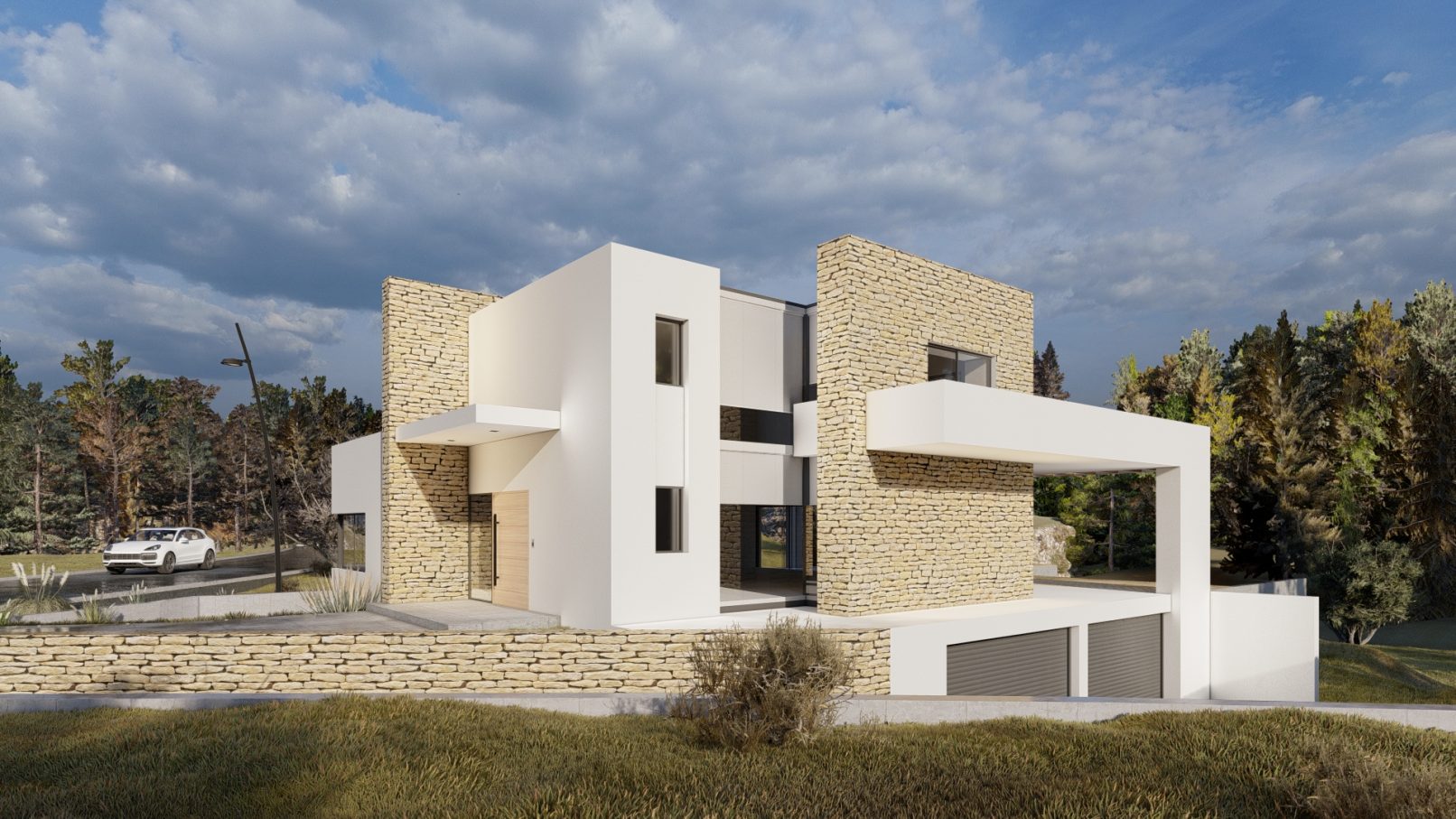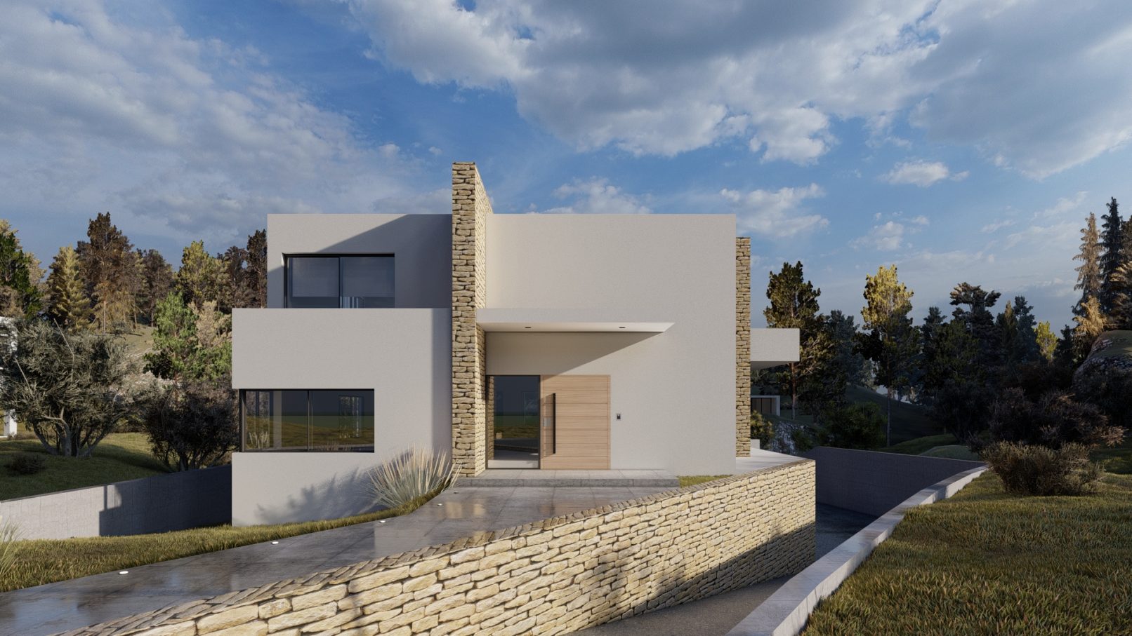 Morfológicamente conformada como prismas puros encastrados, escalonados en el terreno, algunos planos fueron revestidos en piedra autóctona que hace que el  conjunto no tenga un fuerte impacto y que se visualice integrando el entorno natural.