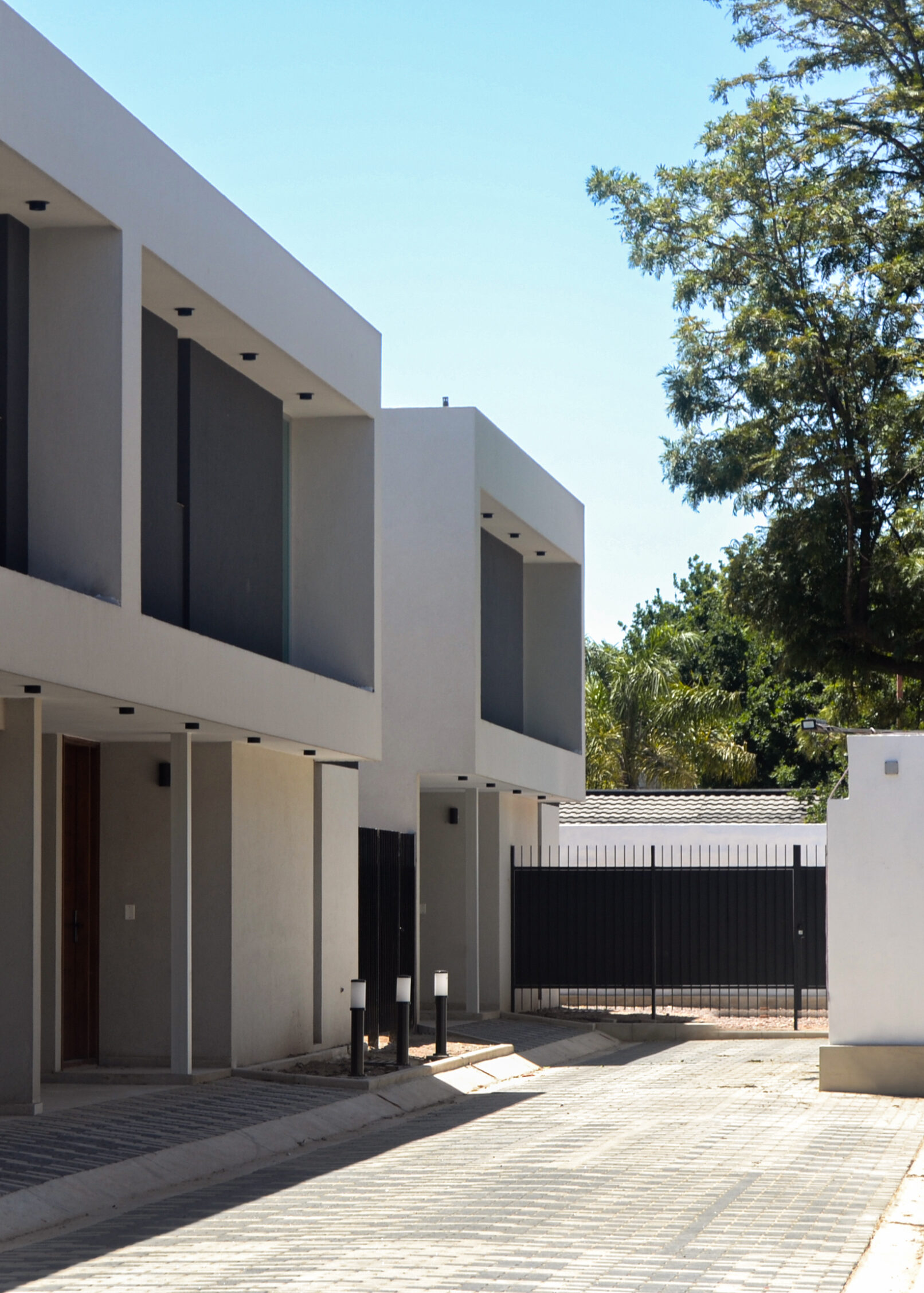 The project is located in the neighborhood of Villa Belgrano, in the City of Córdoba, it is made up of 6 individual houses grouped in horizontal property (HPR) on a total area of 1715m2, articulated by a central street from which the different types of homes that have a green garden in its entirety in front.