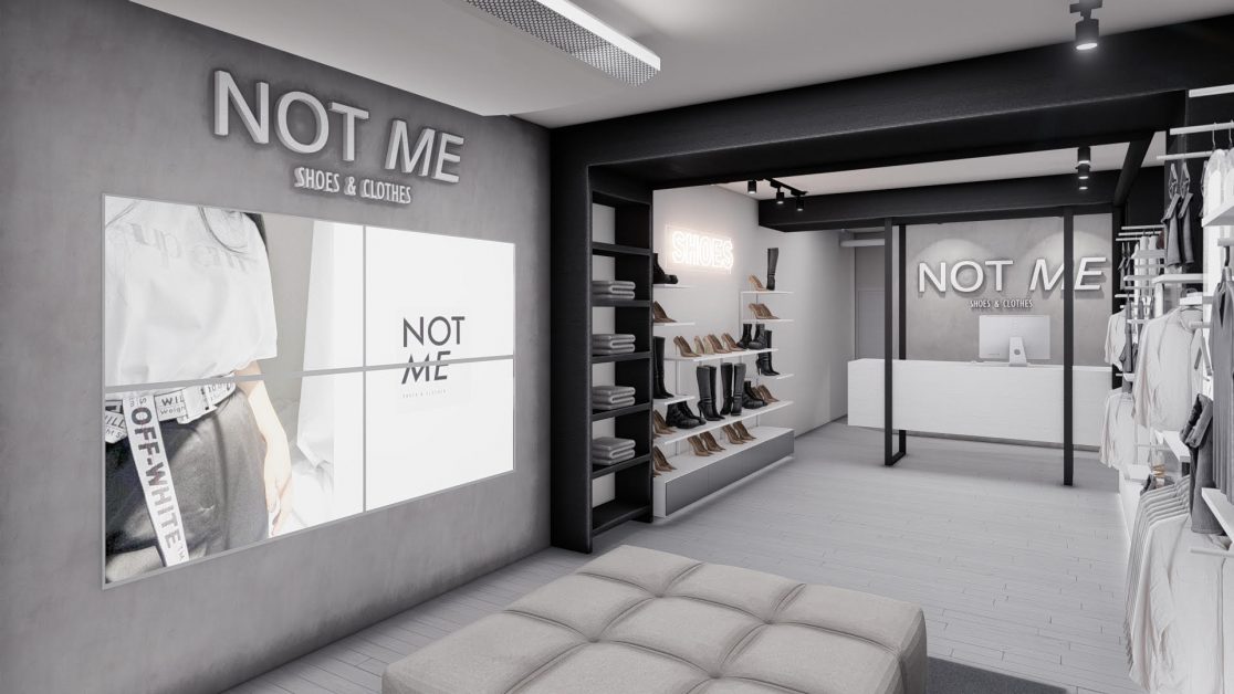 La vidriera izq., que es la que tiene mayor visualización desde la circulación vehicular, contara con una pantalla led, casi sobre su borde externo, donde se proyectaran, en continuado, imágenes y videos de la marca, tendencias, promociones, etc.